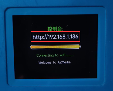 此后盒子开始重新启动,如WIFI密码输入无误,盒子将会成功联网,并显示获取到的IP地址,此地址也即为盒子的控制台地址,如连网失败,可尝试重启或再次配网